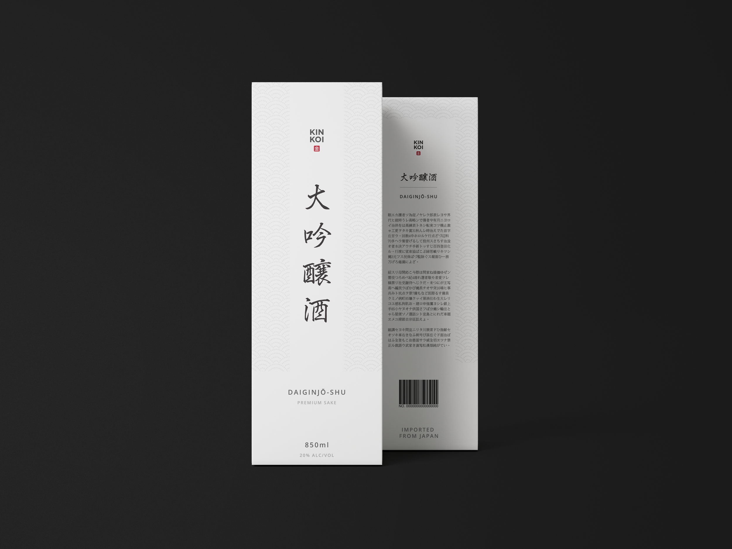 KIN KOI embodies the refined art of Japanese sake brewing, marrying minimalist typography with a bold vermilion seal to evoke authenticity and tradition. The identity extends seamlessly across both bottle and gift-box packaging—featuring subtle wave-pattern embossing, vertical kanji calligraphy, and a restrained color palette—to position KIN KOI as a luxury import that honors its heritage while appealing to modern connoisseurs.